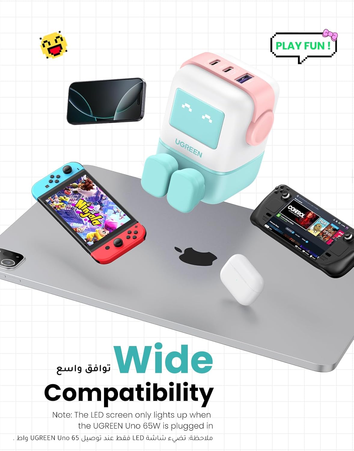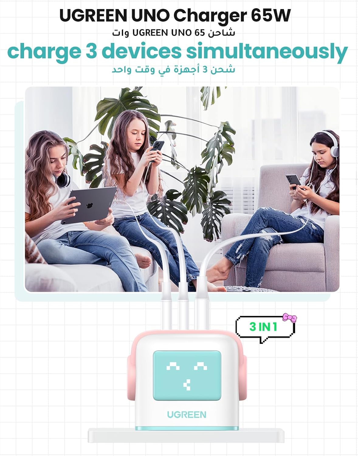 The UGREEN Uno RG 65W 3-Port GaN Fast Charger is designed to provide efficient and rapid charging for multiple devices simultaneously. Its compact design and advanced technology make it an ideal choice for home or travel use.